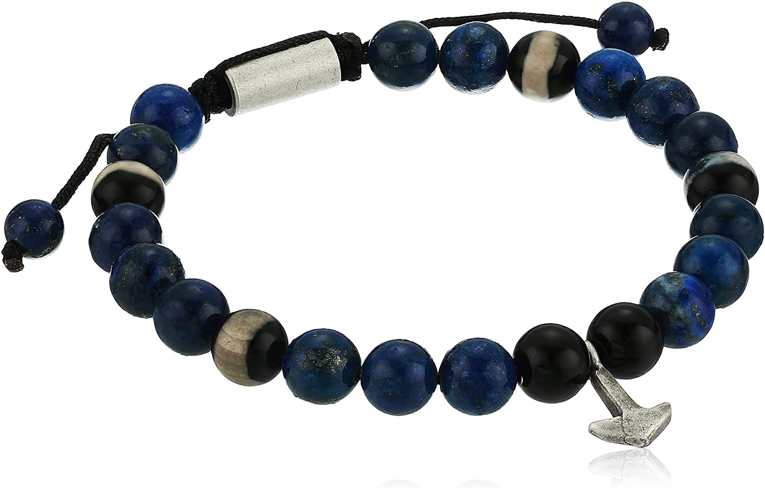 Steve Madden - Pulsera ajustable con cuentas para hombre, acero inoxidable oxidado, diseño de ancla