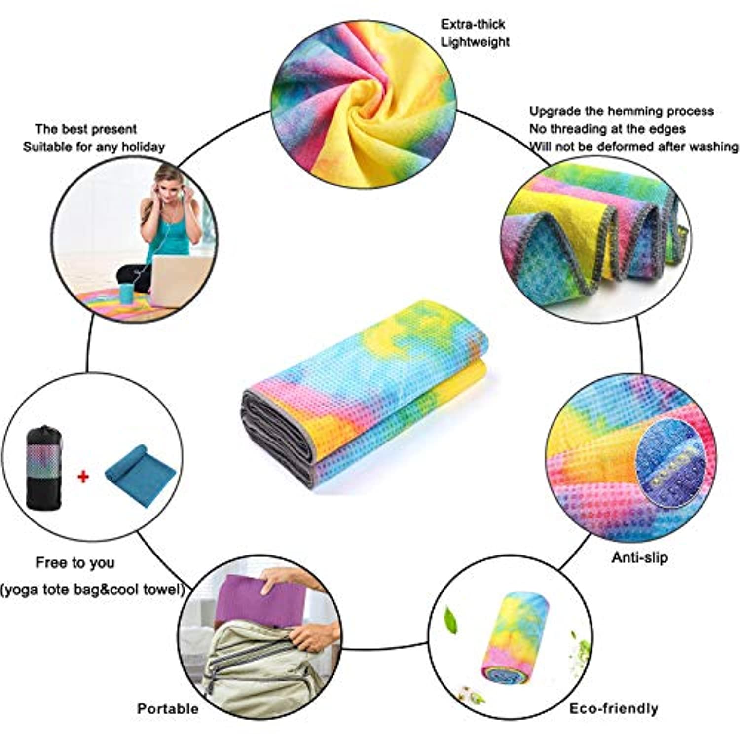 Microfibra antideslizante y absorbente: nuestra toalla de yoga está hecha de 100% microfibra premium. Actúa como una toalla absorbente de humedad ideal para limpiar la transpiración y crear una superficie antideslizante. Para que puedas concentrarte en tu mente, cuerpo y respiración a través de sesiones enteras. Supersuave y absorbente: toalla...